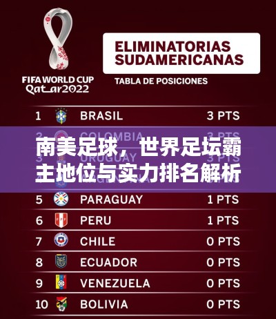 以国际足联(FIFA)的世界排名为例,南美洲足球队在FIFA的排名一直名列前茅,尤其是巴西和阿根廷,长期占据排名前列的位置,其他南美国家如乌拉圭、哥伦比亚等也表现出色,这些成绩充分证明了南美足球在世界足坛的重要地位。